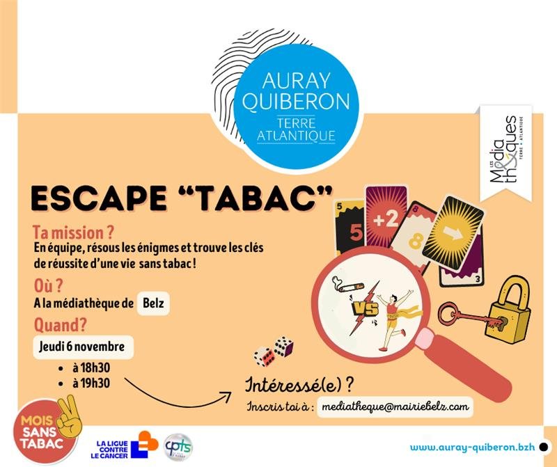 Escape tabac dans les médiathèques 18h30 ou 19h30 pour 45 minutes de challenge !
