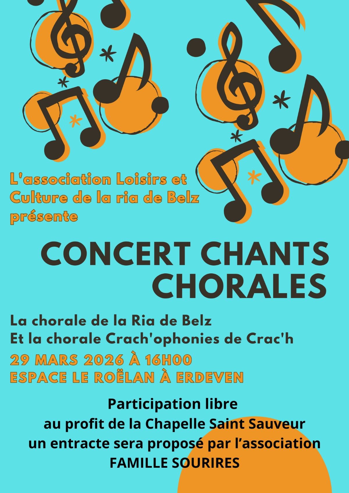 La Chorale "Le Choeur de la Ria" de Belz et la chorale Cracophonie de Crach co-organise un concert au profit de la Chapelle Saint Sauveur d'Erdeven