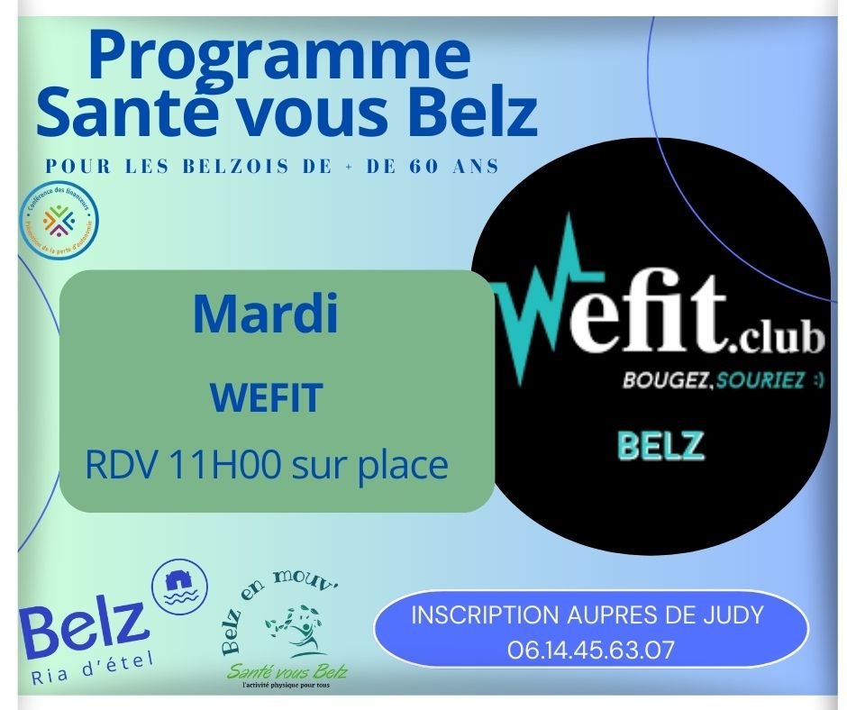 Mardi prochain, nous découvrons la salle Wefit Séance de Gym douce 😊 N'hésitez pas à venir nous rejoindre! Rdv directement sur place à 11h Pensez à prendre une gourde et serviette 😉 Inscription au 06 14 45 63 07 (Judy)