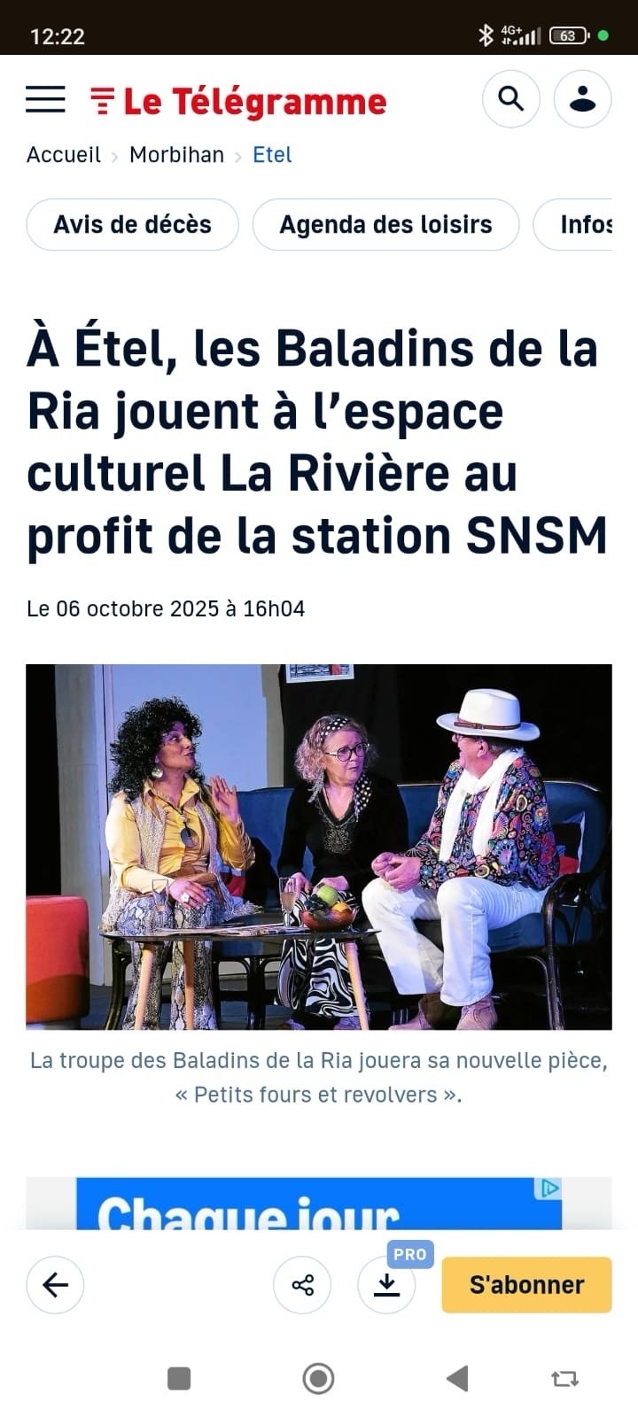 Les Baladins de la Ria invités par la troupe du Brigadier de Plouhinec vous se produisent à nouveau sur scene pour jouer leur comédie policière loufoque Petits fours et Revolver »