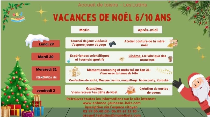 Le programme des vacances de Noël est en ligne. Pour rappel nous sommes fermés la première semaine des vacances scolaires.